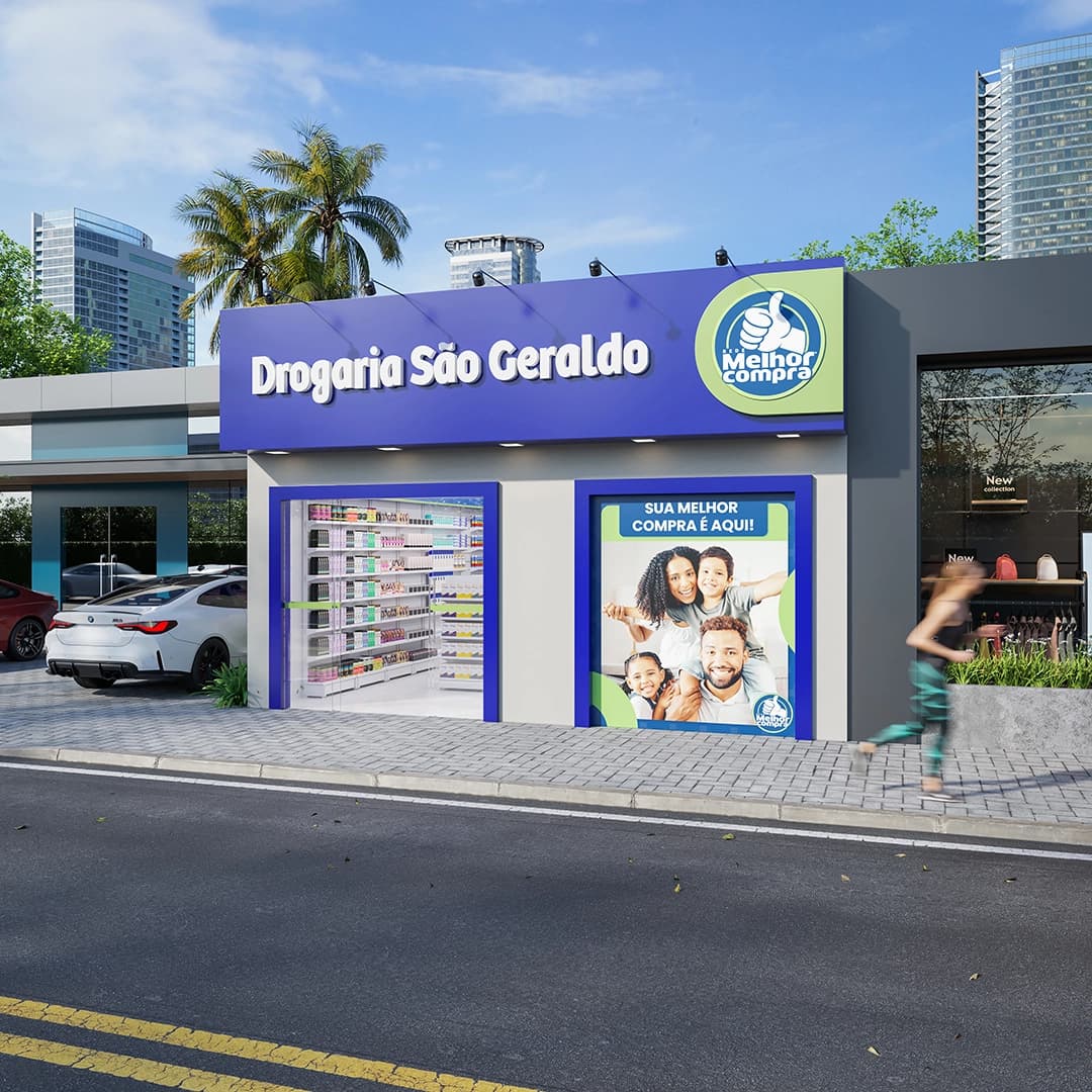 Sua marca e cores predominantes contribuem para que seja percebida pelos consumidores como uma farmácia que proporciona economia, qualidade e segurança.